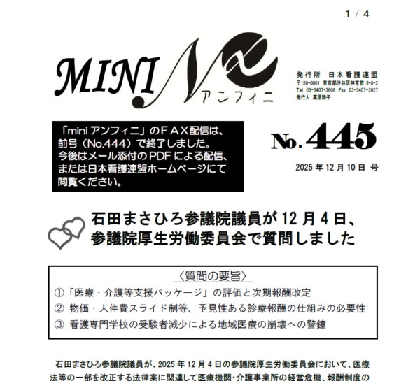 • mini N∞[アンフィニ] No.445 石田まさひろ参議院議員が参議院厚生労働委員会で質問